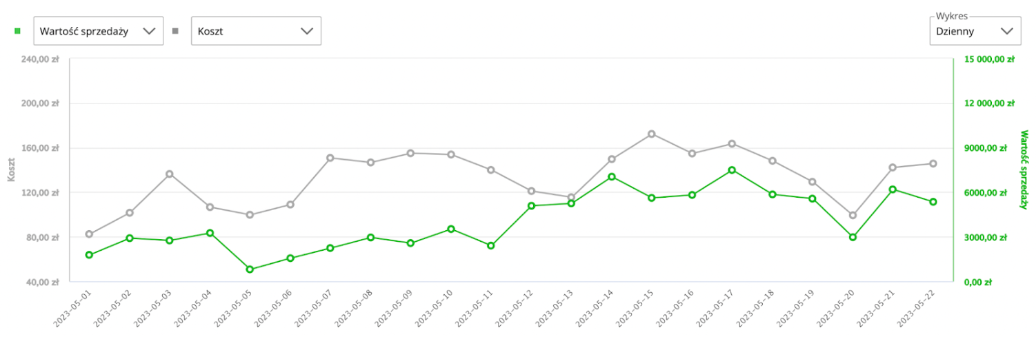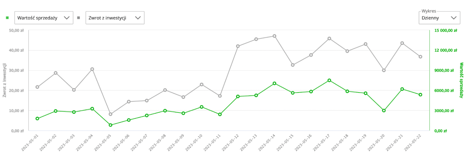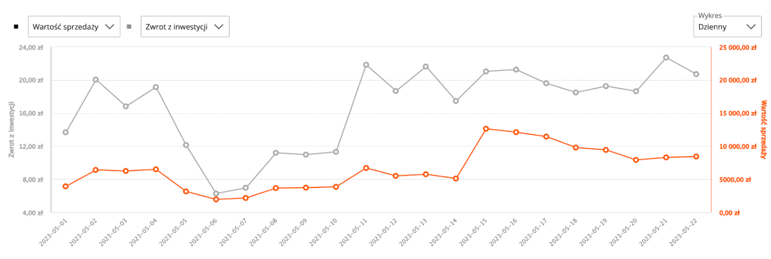 Już na starcie widać wzrosty zarówno wartości sprzedaży jak i zwrotu z inwestycji, przy czym koszty pozostały na podobnym poziomie: